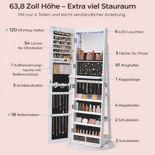 Spiegelschrank mit Schmuckaufbewahrung und LED-Beleuchtung Standspiegel